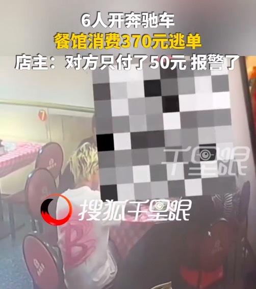 6人开奔驰去餐馆消费370元逃单 店主:扫了半天只付了50元 10月13日,江西抚州。一家纸包鱼店曝光6人开奔驰吃饭,消费370元仅支付50元后逃单。店主余先生称,当时6人吃完陆续走出去,就跟出去让付钱,扫了半天只付了50元,其中3人下车后分头逃跑,开奔驰的一脚油门走了,已经报警了,到现在还没给钱。...