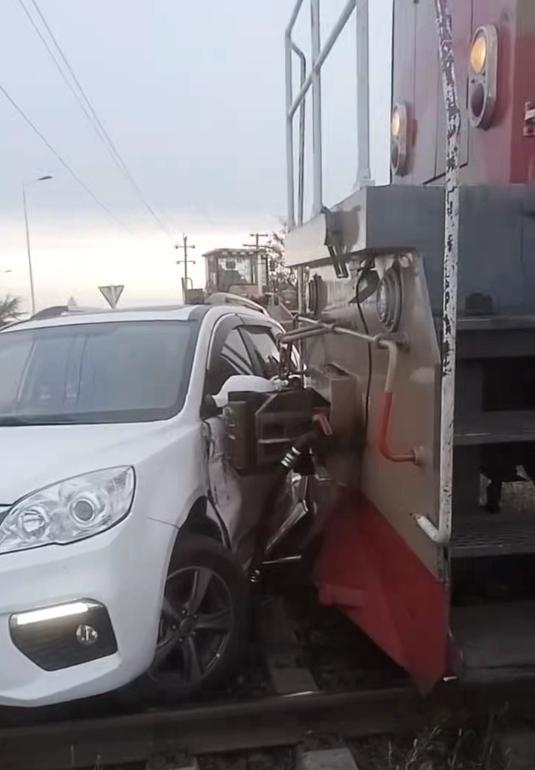 内蒙古呼伦贝尔一汽车与火车头相撞 幸无人员伤亡 10月13日,在内蒙古呼伦贝尔市扎赉诺尔灵泉矿附近,一辆机动车横过铁轨时与火车车头相撞。据交警证实,事故已处理完毕,除车辆受损外,没有人员伤亡。当天上午8点51分,一位内蒙古网友发布的视频显示,这起事故发生在一处公路和铁轨交会处。视频中可以看到,一辆车牌为蒙E...