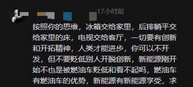 谷玉坤的“暗踩”很快引发网友反弹,“新能源当年也被燃油车看不起,现在不也发展起来了?”有网友直言,“人家只卖给受过培训的人,算负责任的创新,不该被贬低”。