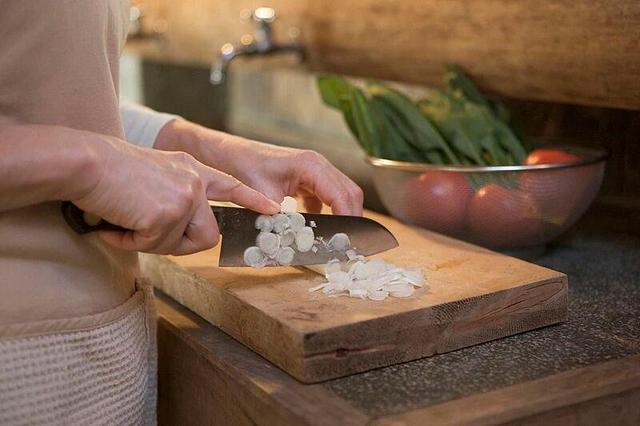 在厨房做饭时,若不小心手指受伤流血,可以将葱膜撕下来敷伤口,不仅能止血,还有杀菌消炎作用。