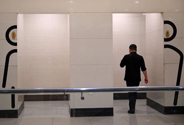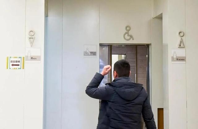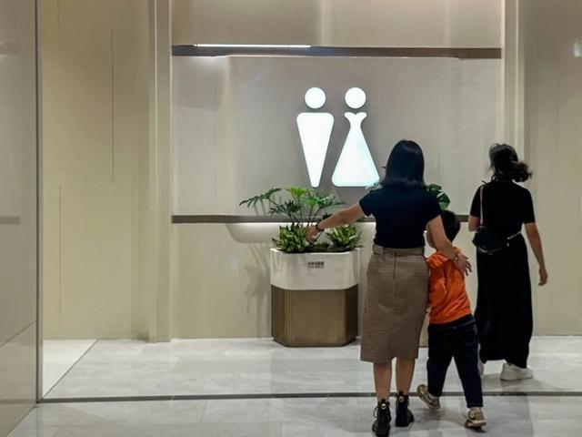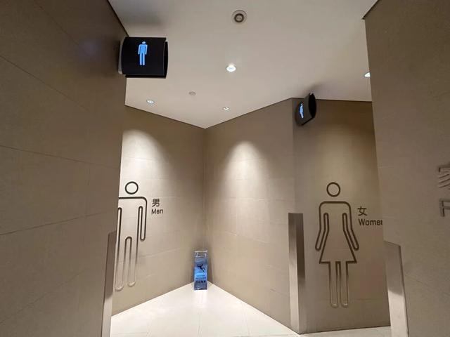 10月19日,在重庆市两江新区一商场,顾客如厕前观察卫生间标识。