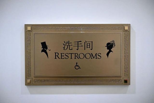这是11月4日在天津一家酒店拍摄的卫生间标识。虽未使用标准通用图形符号,但通过服饰的剪影可一眼看出性别,既有设计特色,又起到分辨性别的功能。