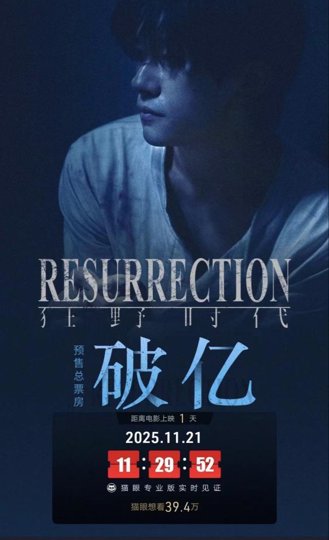 2025年11月21日,由毕赣执导,易烊千玺、舒淇领衔主演的艺术电影《狂野时代》预售总票房正式突破1亿元大关,成为2025年电影市场又一预售破亿的影片。