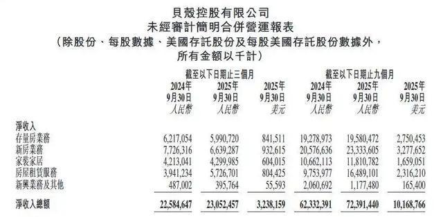 贝壳最新发布的2025年第三季度业绩报告显示,报告期内,贝壳实现收入231亿元,同比增长2.1%,但净利润仅为7.47亿元,同比大幅下跌36.1%。房地产市场整体低迷是贝壳业绩承压的大背景。