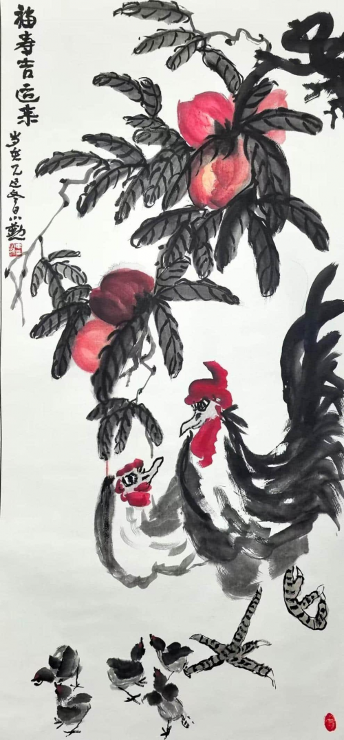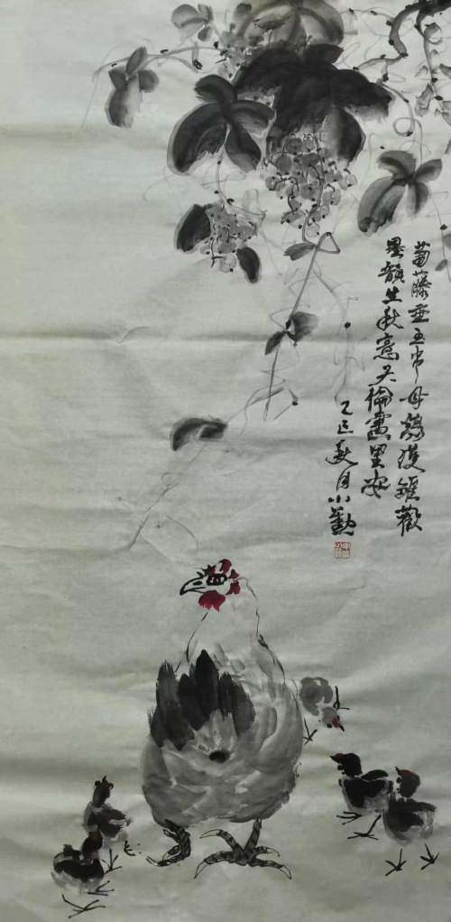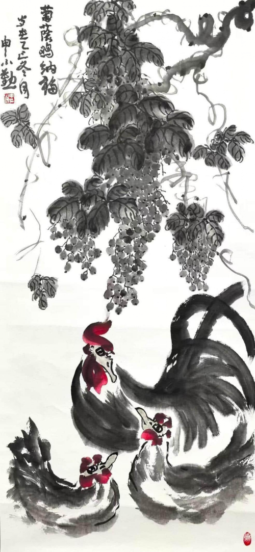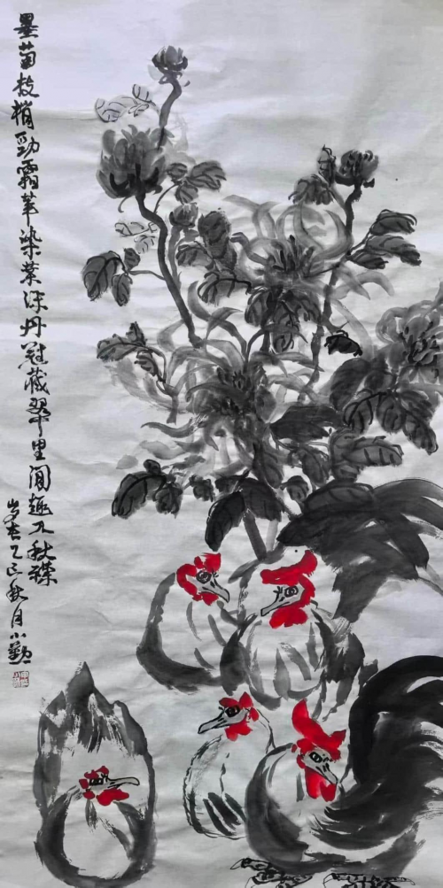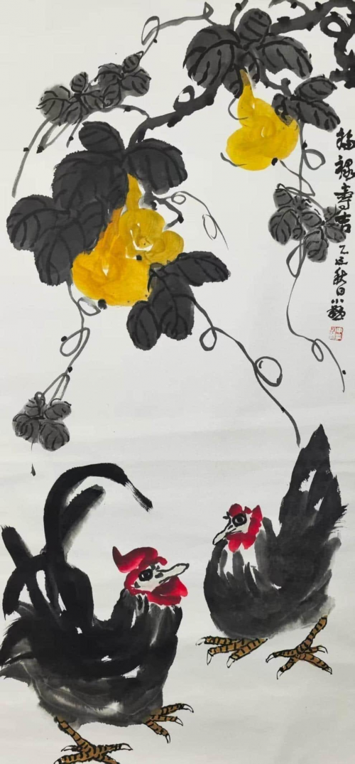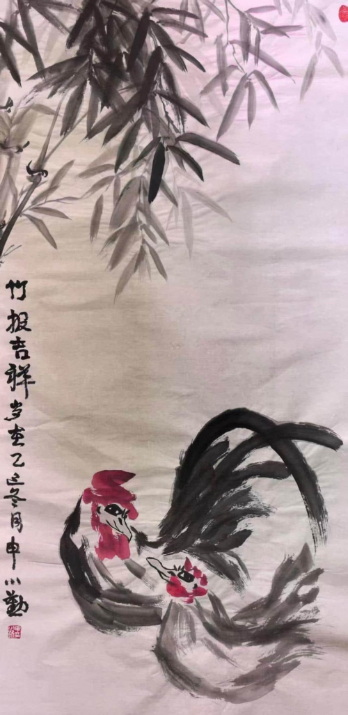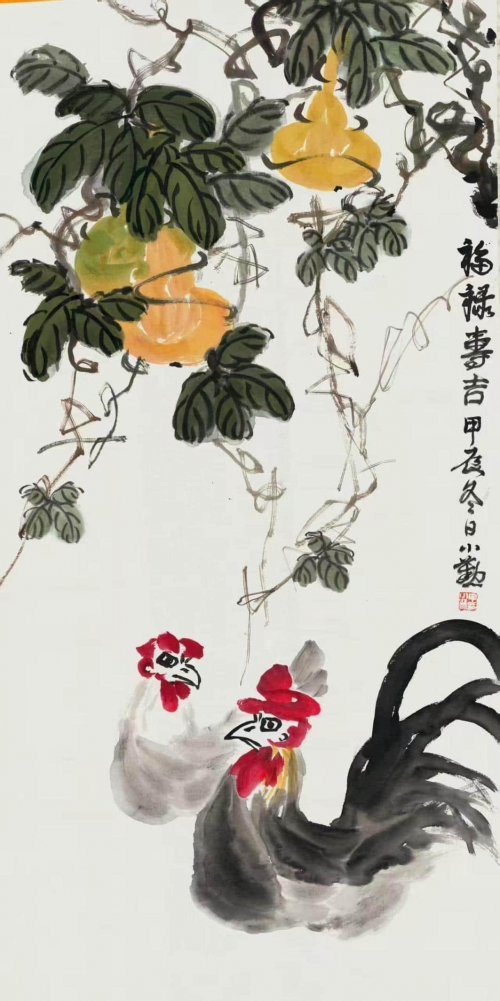 她擅长画禽鸟、兰花,犹喜画鸡;画作中,那些鸡的形象无疑是最为引人注目的;在她的笔下,鸡的眼眸呈方形,目光如炬, 鸡的形象被刻画得栩栩如生, 犹如寓言中的神鸡降临凡间;这些鸡的眼眸形状独特,生动地描绘出了鸡的神态,流露出一种难以言喻的灵性,这些鸡的形态各异,有的威猛雄壮,有的温婉柔美,展现出了鸡的不同面貌和性格。她的绘画风格独特,色彩运用恰到好处,使得画作中的每一处都充满着深邃的意境,以其独特的绘画风格为我们呈现了一幅幅别具一格的艺术画卷。