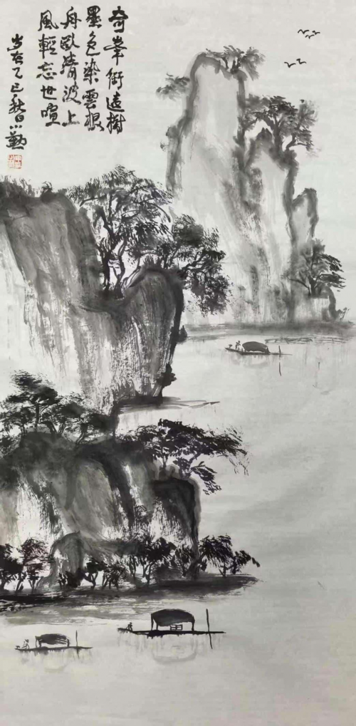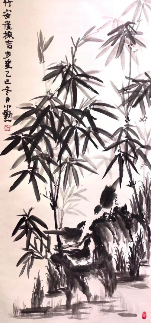 申小勤深研八大山人孤高简远之境,融徐渭泼墨狂放、昌硕金石苍劲、白石翁天趣童真、板桥竹石风骨、宾虹积墨浑厚、抱石散锋酣畅 、莫奈的光影色彩理解 。 践行"三立三承"之道,