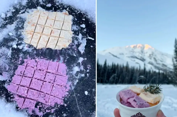 制作过程看似简单,实则需要丰富的经验。摊主需要根据冰面的厚度、温度变化及时调整酸奶的厚度和翻转频率,确保每一份炒酸奶都能达到理想的口感。这种利用自然环境的制作方式,不仅让传统美食焕发新生,也体现了东北人民在寒冷气候中的智慧与创造力。