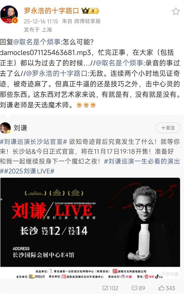 12月16日,有网友追问罗永浩“录音的事过去了吗?”,罗永浩回应称:“怎么可能?忙完正事,在大家(包括正主)都以为过去了的时候。”