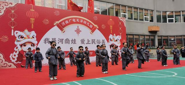 2025年12月31日,河南广电天泽幼儿园内锣鼓喧天、年味浓郁,以“我是河南娃 爱上民俗美”为主题的第十届民俗文化节火热举行。全体师幼与家长齐聚一堂,通过深度挖掘与体验本土文化资源,共同呈现了一场根植中原大地的民俗文化盛宴,在童趣盎然中传承优秀传统文化,为童年注入深厚的文化自信。