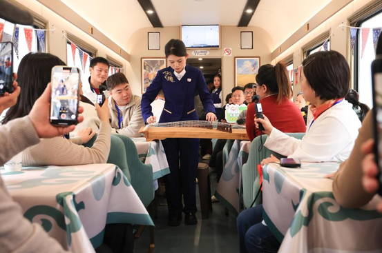 "悠享龙江·银旅号"不仅是一列交通工具,更是一个"移动的文化地标"。列车以"慢旅行、深体验"为理念,通过主题装饰、文化讲解和互动活动,全方位展现北国风情。车厢内,鄂伦春族传统图案与现代设计元素巧妙融合;餐车上,厨师现场制作东北特色美食;晚间,乘务员组织民俗讲座、手工制作和红歌会等活动。来自广东的游客张先生分享道:"我们在车上学会了剪纸,品尝了地道的东北酸菜饺子,晚上还听了一场关于鄂伦春族历史的讲座。这种沉浸式体验,比单纯看景点更有意义。"行程中,游客将参观鄂伦春民族博物馆、探访神秘的嘎仙洞、体验马头琴演奏、参与下马酒仪式,甚至有机会在北极村追寻极光。一位文化学者评价道:"这趟列车将黑龙江的自然风光与人文历史串联起来,让游客在舒适环境中深度了解北国文化,实现了旅游从'走马观花'到'深度体验'的转变。"更贴心的是,针对老年旅客需求,餐车特别供应低糖、低盐的"适老餐",并根据季节变化调整菜单。冬季提供热气腾腾的酸菜白肉火锅、雪衣豆沙等暖胃美食;夏季则有清爽的蓝莓山药、松仁玉米等当地特色。这种将美食、文化、景观融为一体的设计,使列车成为展示黑龙江魅力的流动窗口。