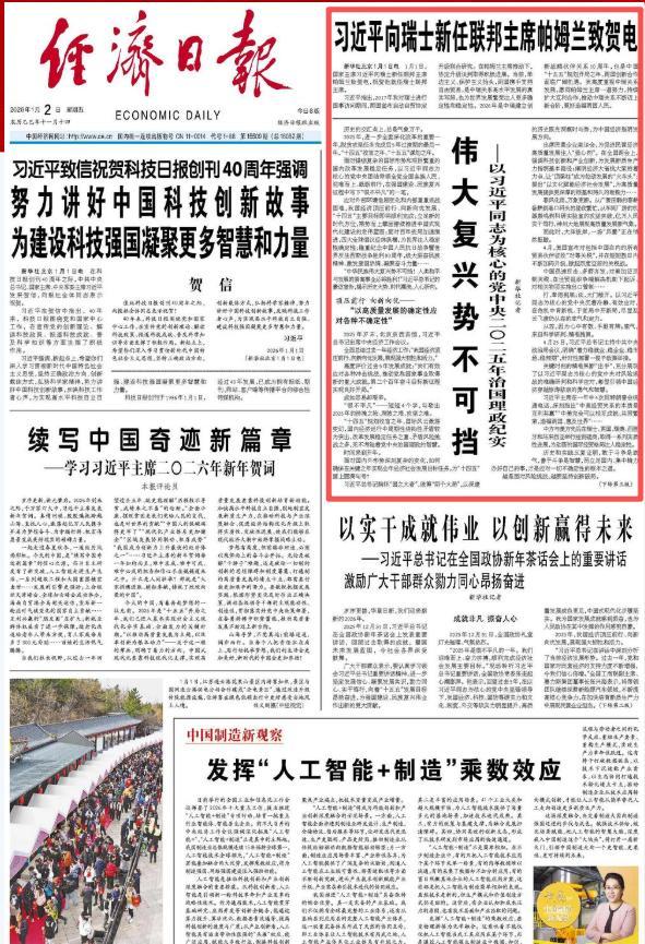 1月2日出版的《经济日报》刊发《伟大复兴势不可挡——以习近平同志为核心的党中央二〇二五年治国理政纪实》