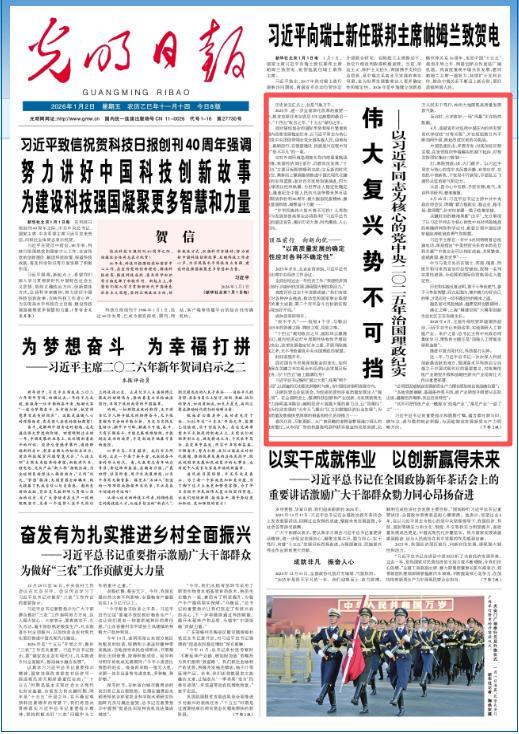 1月2日出版的《光明日报》刊发《伟大复兴势不可挡——以习近平同志为核心的党中央二〇二五年治国理政纪实》