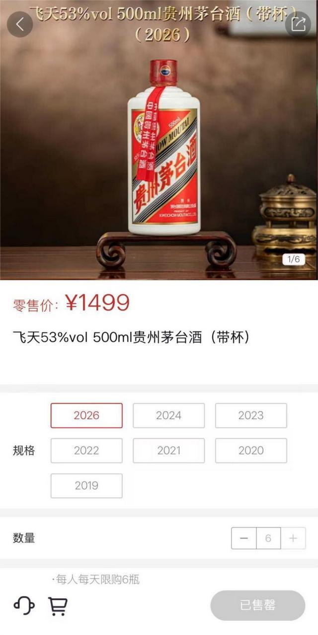 1月3日晚间,i茅台发布消息称,三天的时间,超10万名用户购买到自己心仪的产品。春节将至,为满足更多用户的需求,自1月4日至春节前,每人每日可购买的飞天53%vol 500ml贵州茅台酒(2026)最大数量将调整为6瓶。