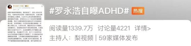随后,罗永浩在个人社交账号上发文,称自己患有ADHD十几年,导致自己工作上经常出现问题↓↓↓