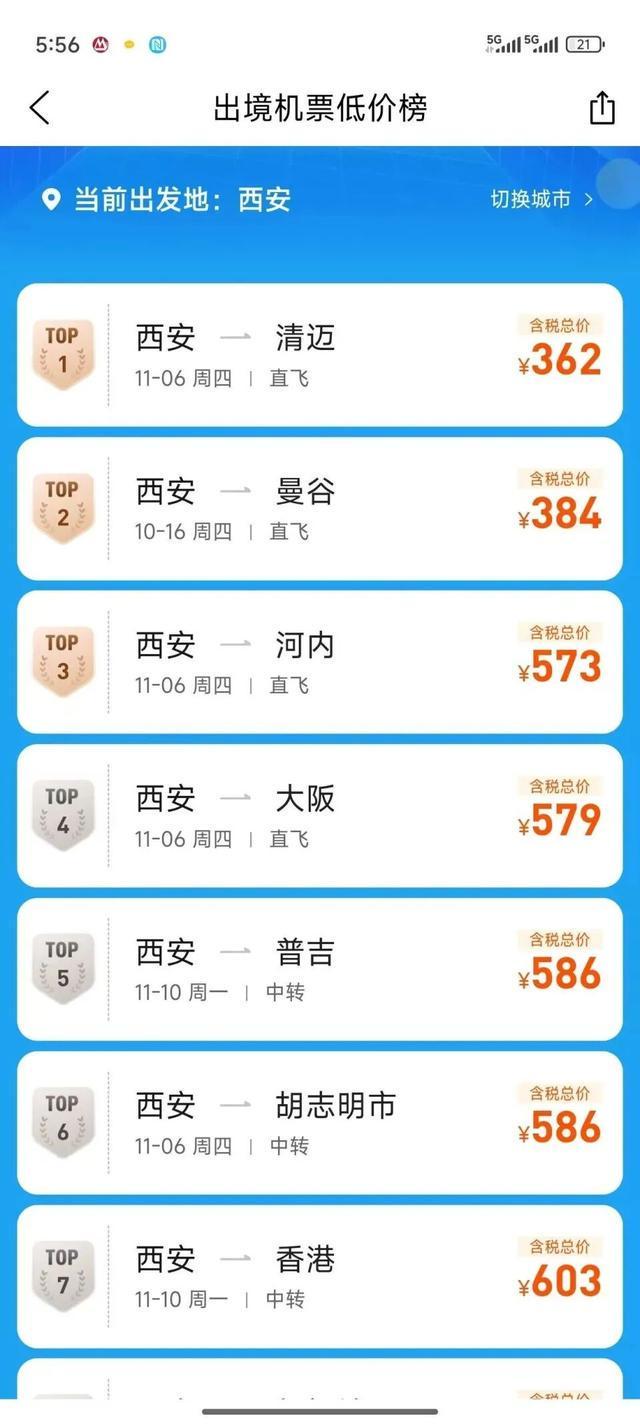 此外,日本、泰国、新加坡、意大利等热门国际航线也出现“抄底价”。有记者查询发现,下周从西安出发前往清迈、曼谷最低票价仅为300多元。