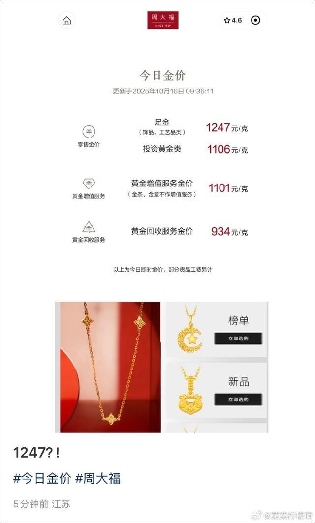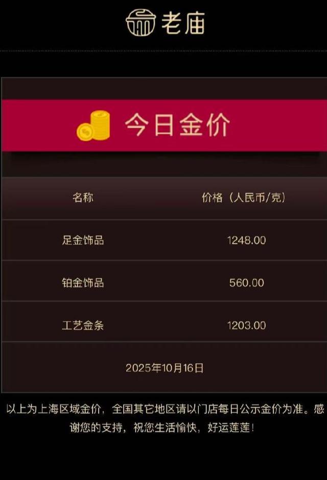 周大福、老庙黄金报价已达1247元/克和1248元/克!近期,你还会选择购入黄金饰品吗?