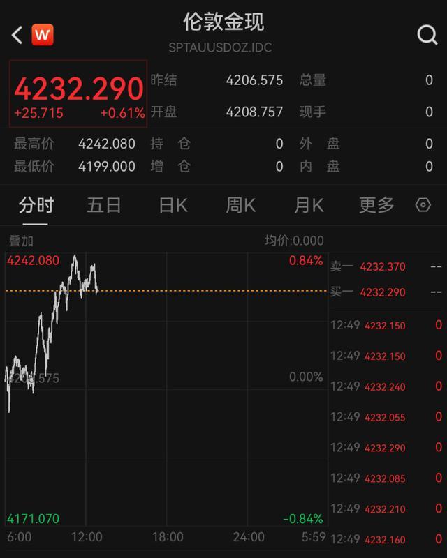 今天,现货黄金盘中一度突破4240美元/盎司,已连续四个交易日创下历史新高。